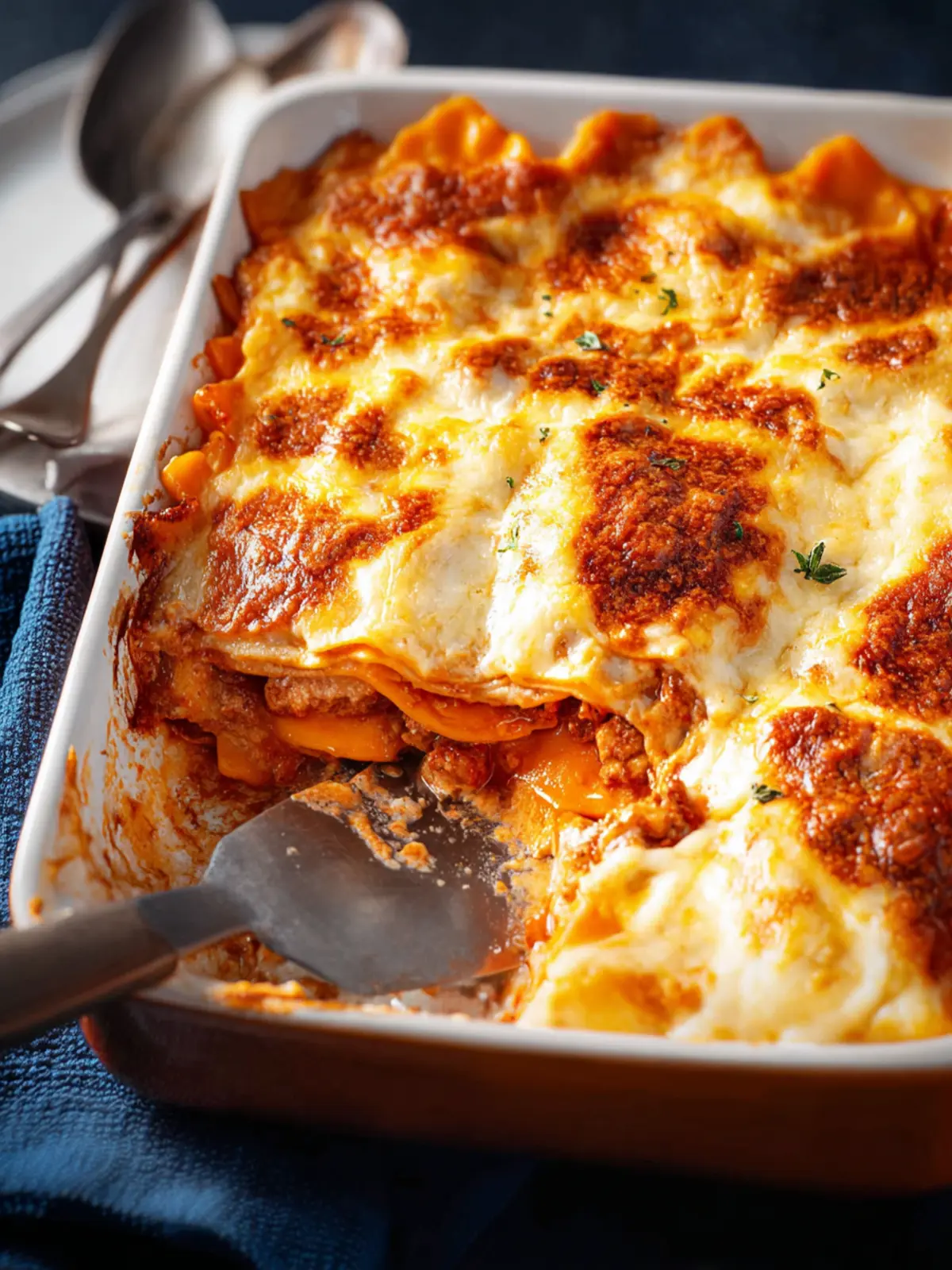 Cover your lasagna with aluminum foil during the first half of baking to prevent over-browning, then remove it to allow the top to crisp up beautifully.
