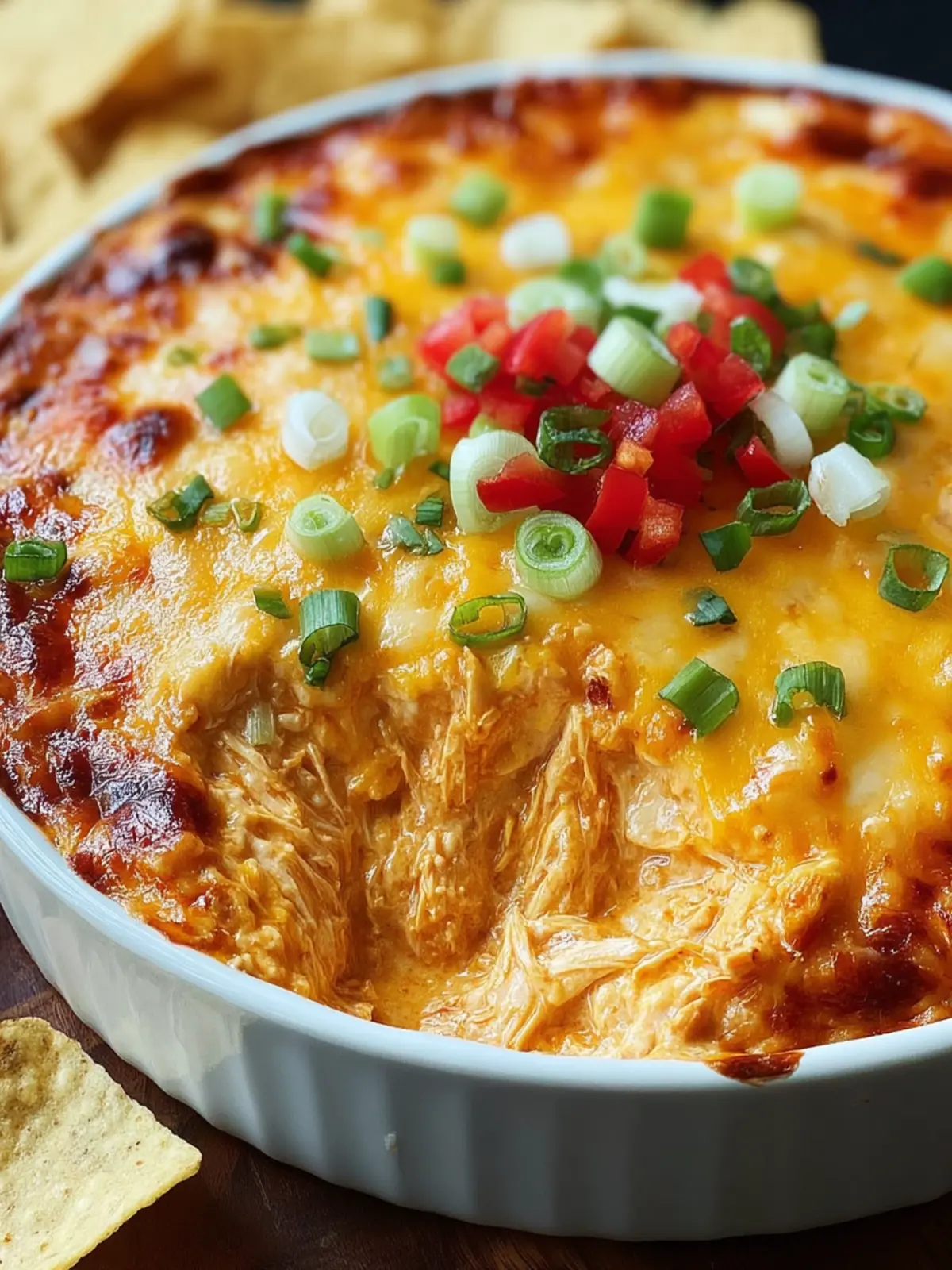 Bake the dip until bubbly and golden brown for maximum appeal. For serving, consider adding a sprinkle of green onions or cilantro for freshness. It looks great and adds a burst of flavor. Don’t forget to set out an array of dippables, from tortilla chips to celery sticks!