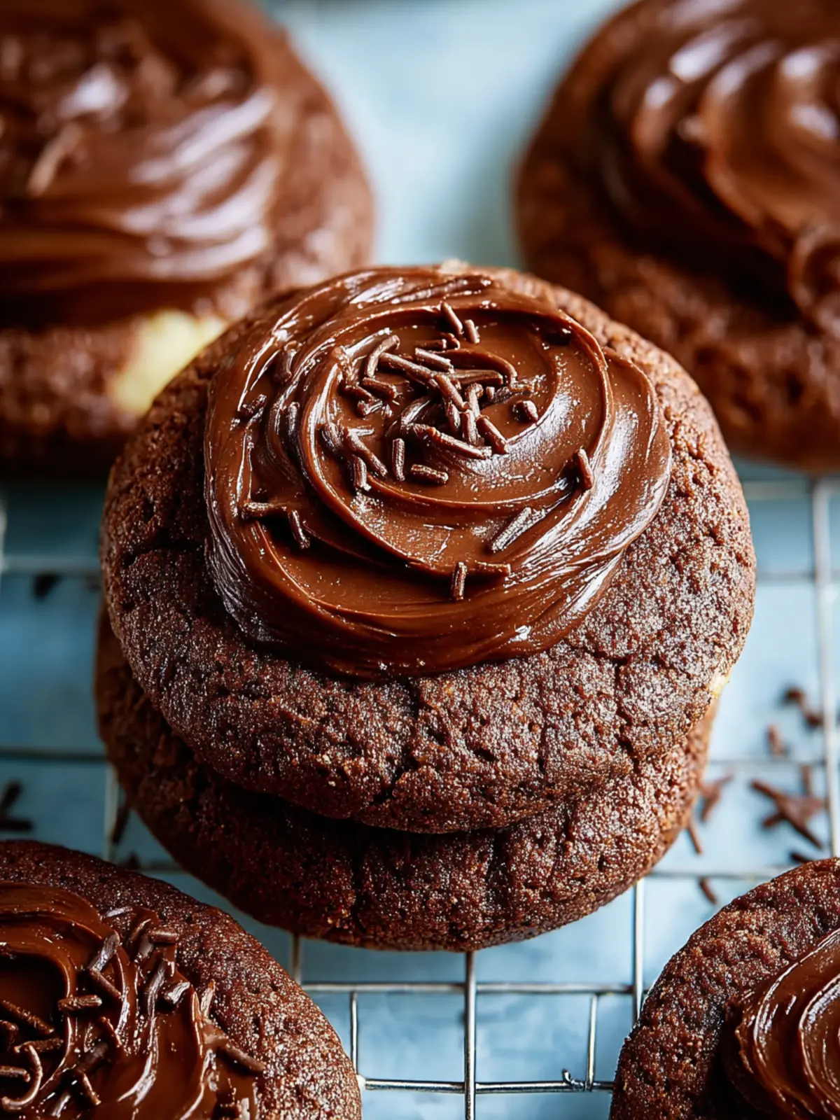 After baking, let your cookies cool on a wire rack for about 20 minutes. This waiting game is essential for achieving the perfect texture before you add that luscious chocolate frosting.