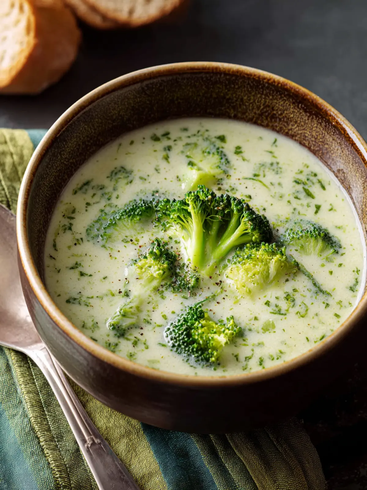 A delicious and creamy broccoli soup perfect for a comforting meal. Serve with crusty French bread for a complete experience.