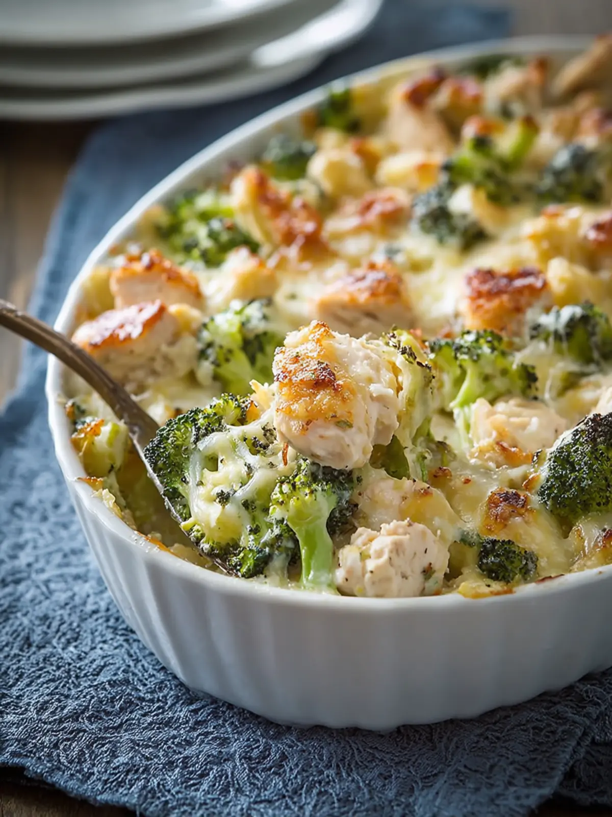 A delicious cheesy chicken and broccoli bake that’s easy to prepare and perfect for weeknight dinners.