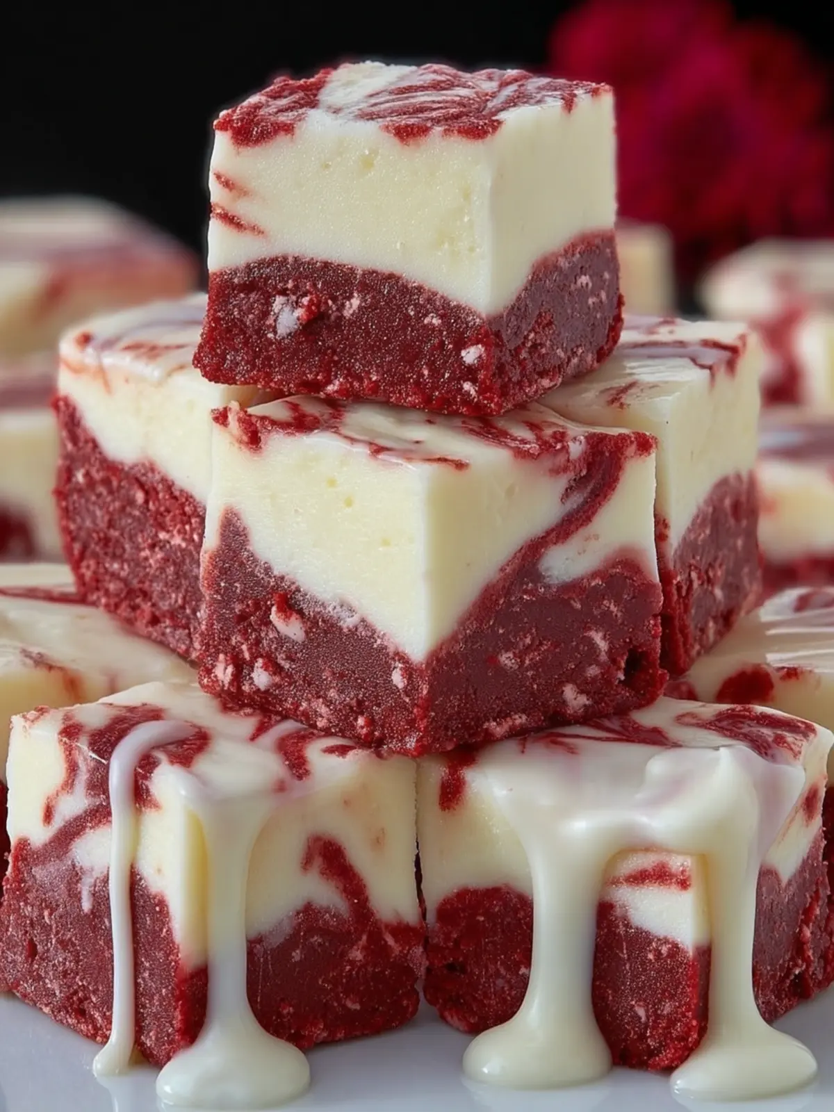 Delicious and visually stunning treats that combine creamy white fudge with a rich red velvet swirl.