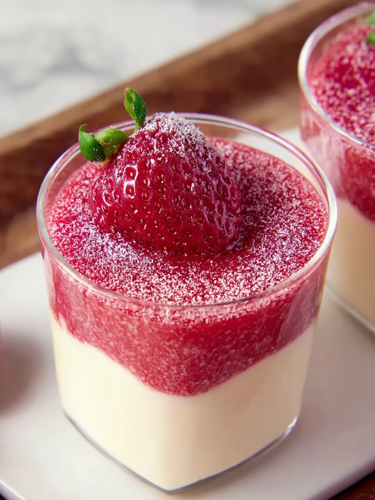 - Chill and Serve: Refrigerate the parfaits for at least 2 hours or until set. Garnish with fresh strawberries or a sprinkle of strawberry powder before serving.