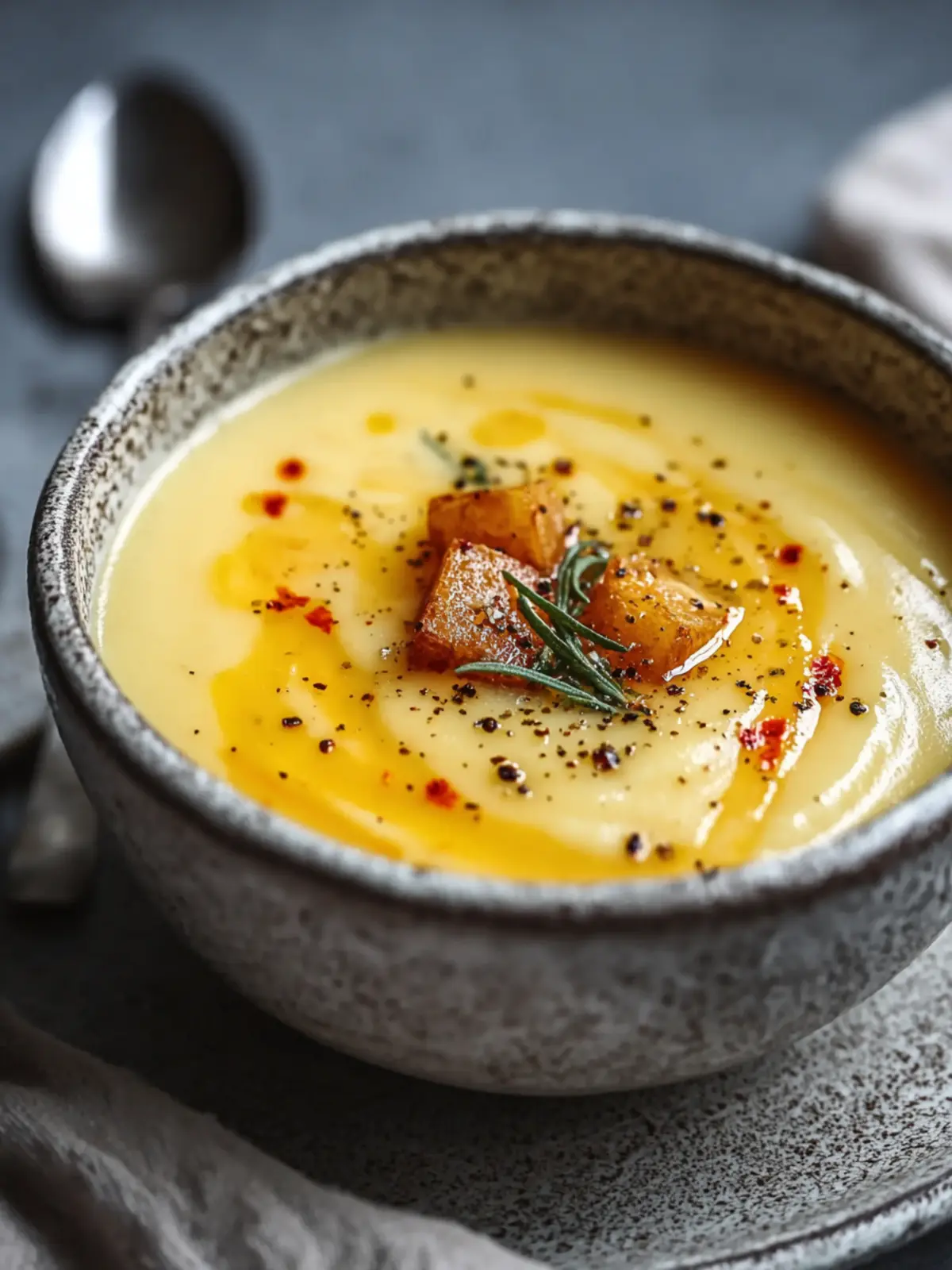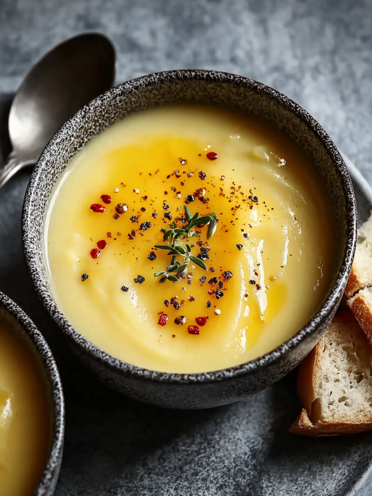 A velvety and creamy potato soup, perfect for a cozy meal.