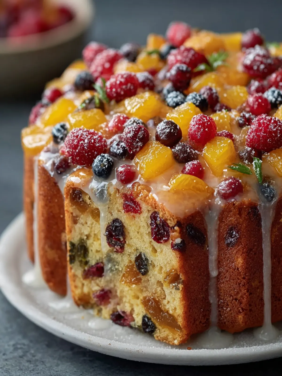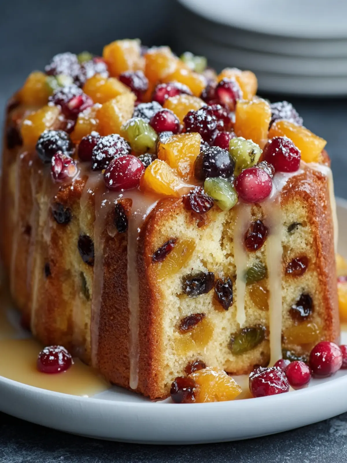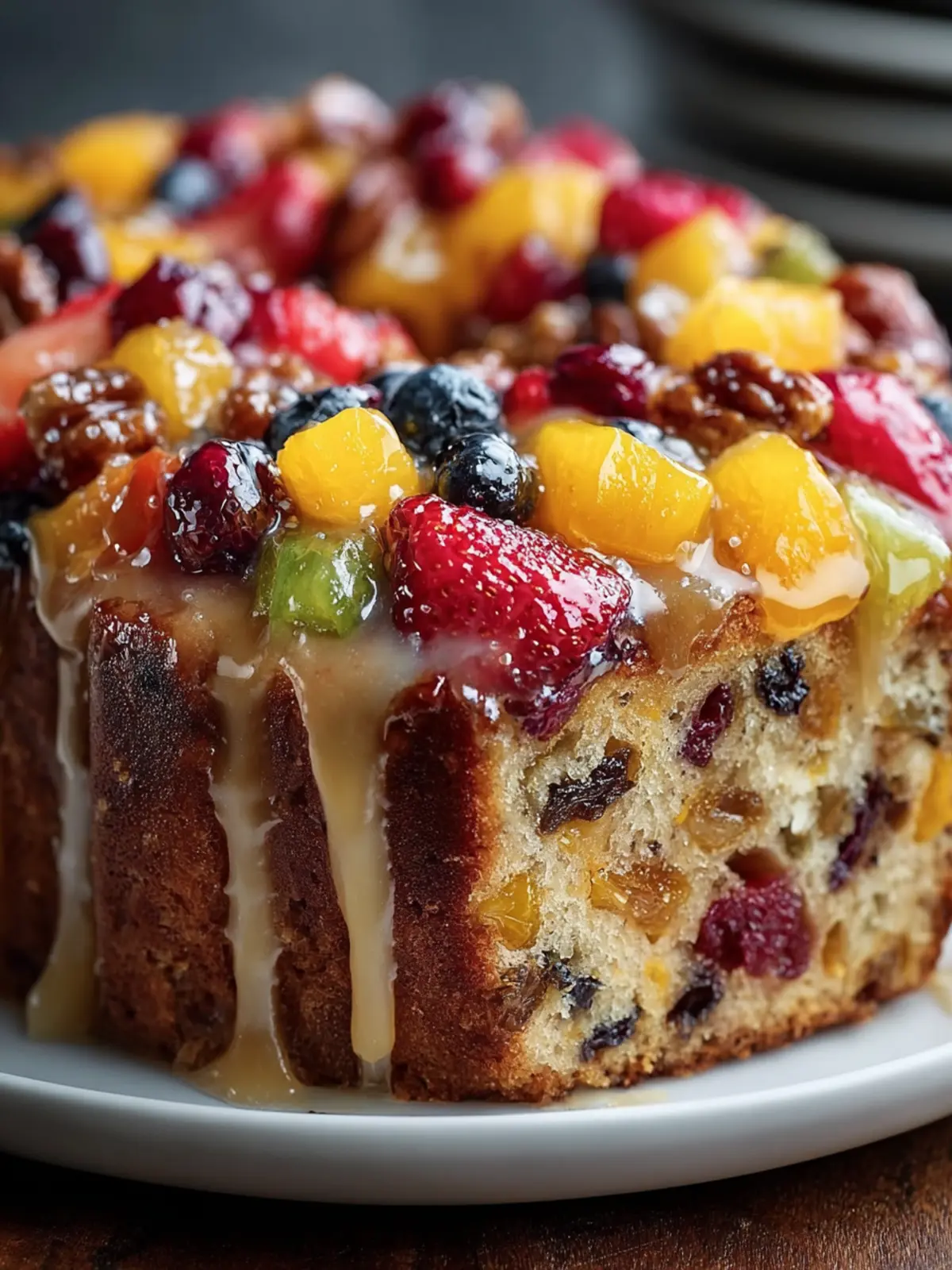 Delicious fruit-studded holiday fruitcake that brings festive joy to your celebrations!