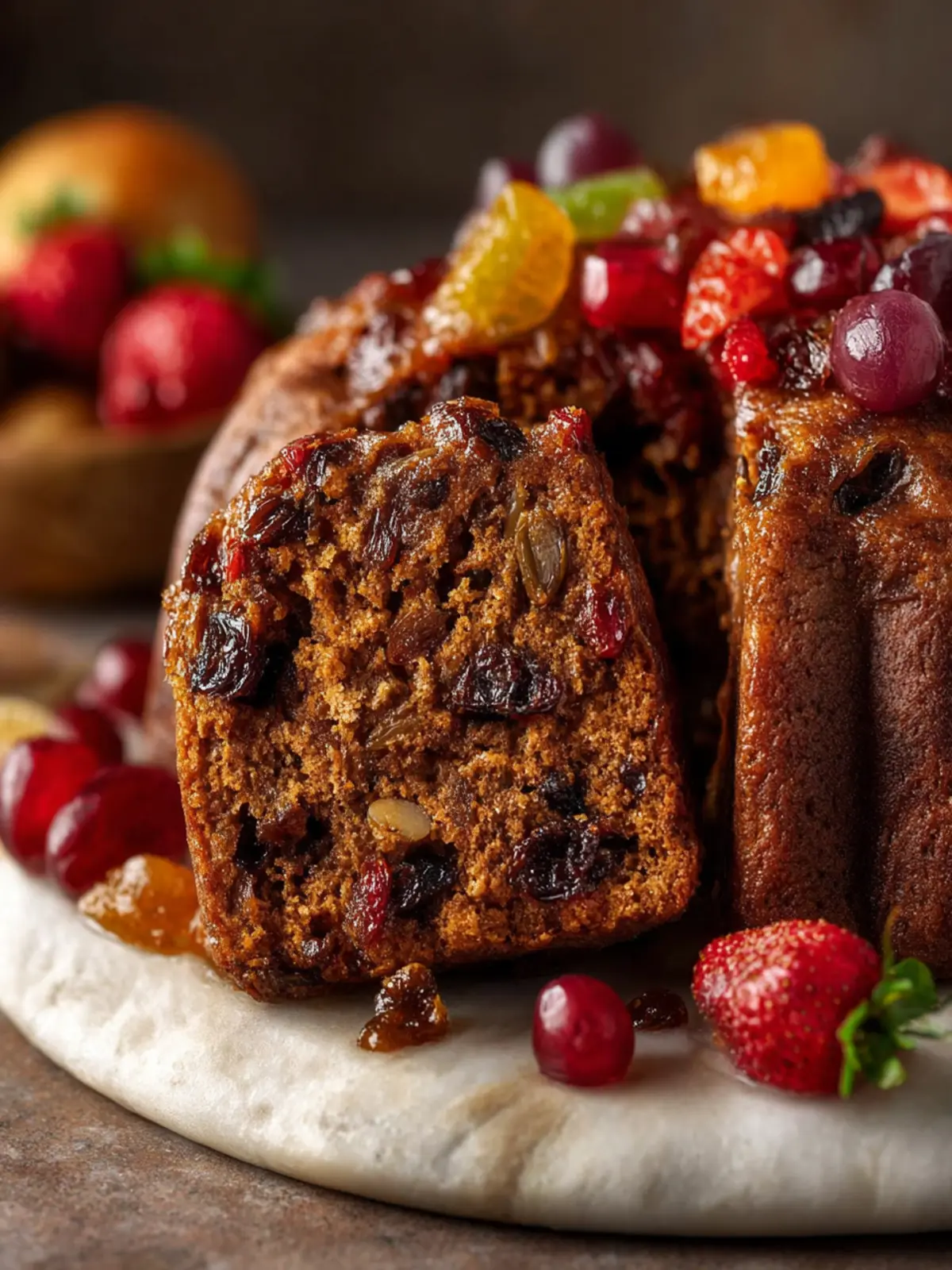 Packed with Nutrients: The fruits in this cake bring a natural sweetness and an array of vitamins. Think of juicy raisins, zesty orange peel, and dried apricots that complement each other beautifully.