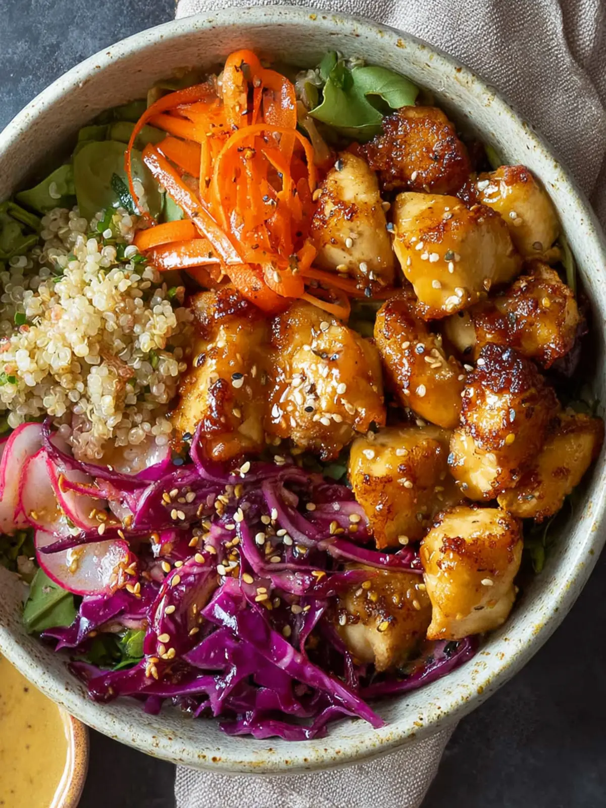 Quinoa is a fantastic source of protein and fiber, but if you’re looking for alternatives, brown rice, farro, or even cauliflower rice can make excellent substitutes. Each alternative brings its own texture and flavor profile, so don’t hesitate to experiment and find what you love best with your hot honey chicken bowls.