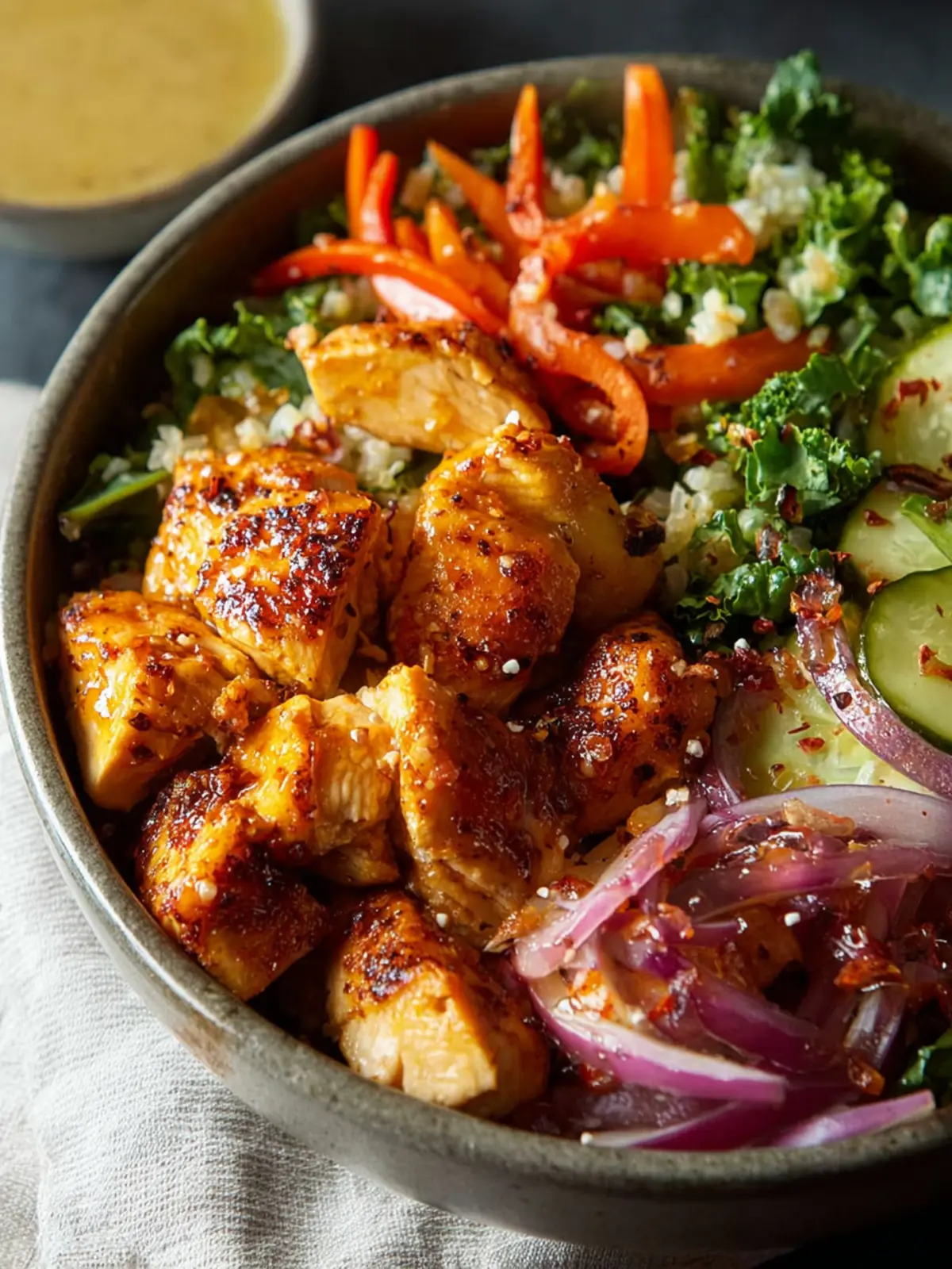 As an added bonus, the preparation is simple and quick, making it an ideal choice for those hectic weeknights or lazy weekends when cooking feels like a chore. The combination of seasoned chicken, crisp veggies, and that dare-to-be-different hot honey drizzle creates a bowl bursting with flavors—truly comfort food redefined.