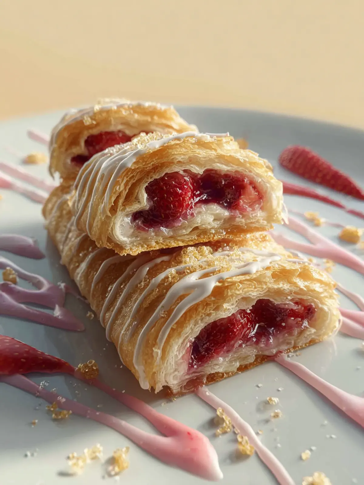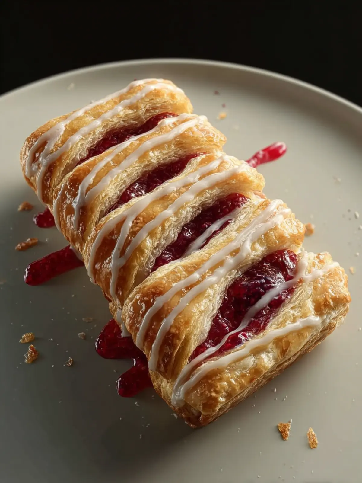 Delicious berry jam-filled strudels made with puff pastry, drizzled with a sweet icing.