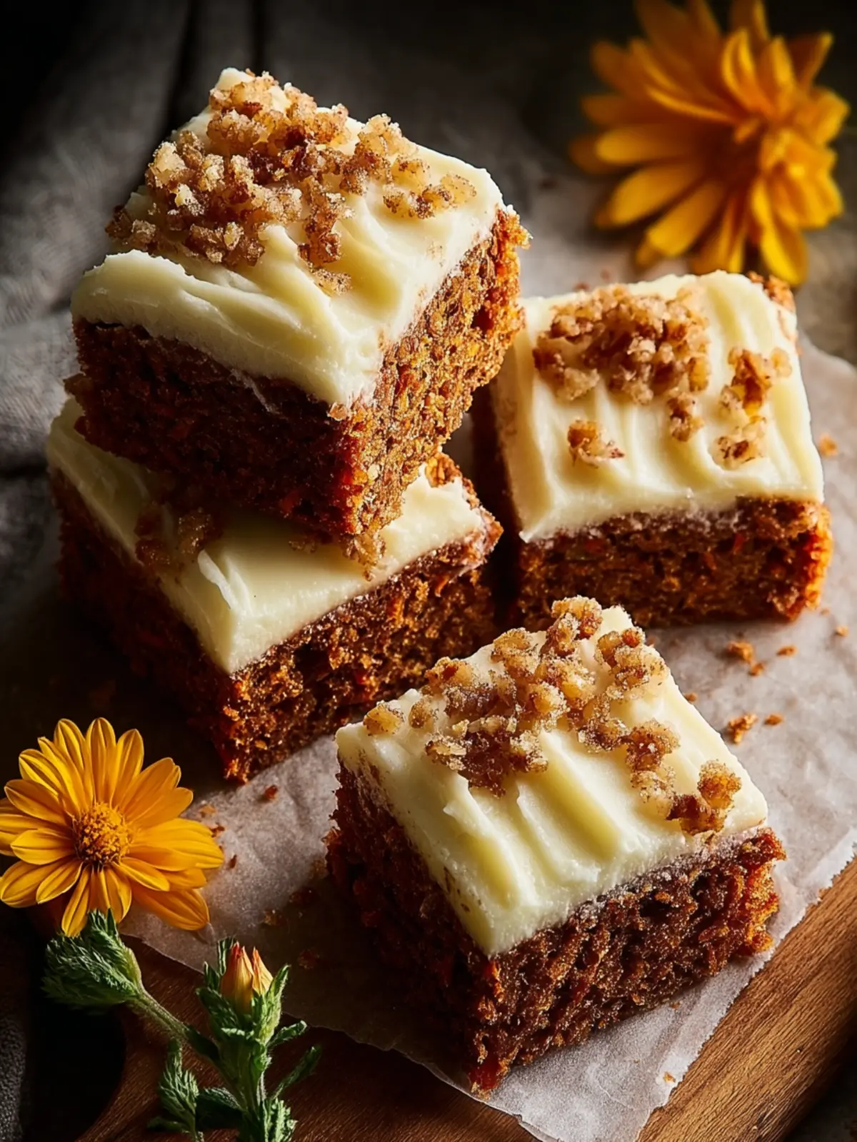 Enjoy these irresistible carrot cake bars, knowing they offer both flavor and a bit of nutrition!