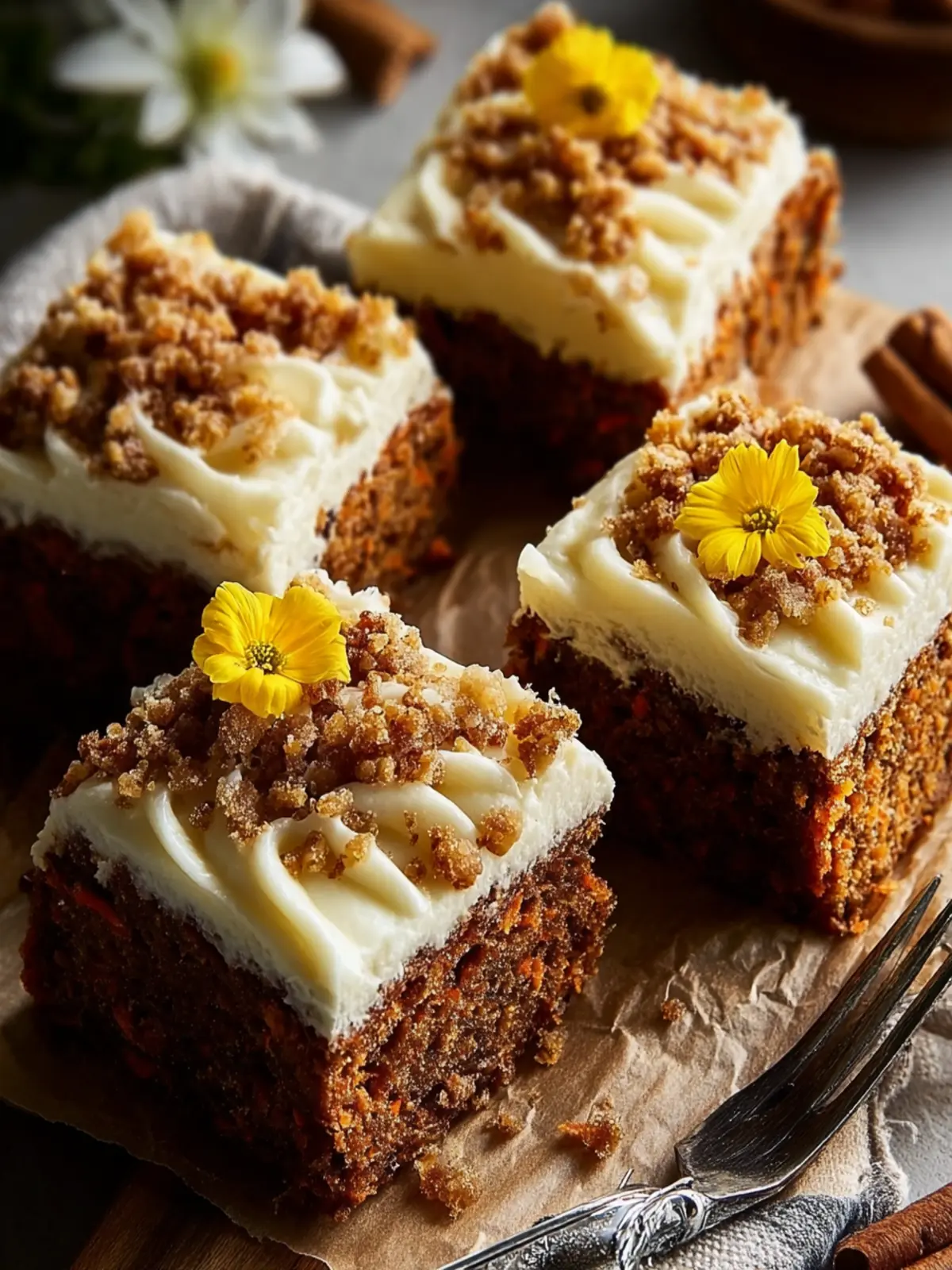 Deliciously Versatile: These irresistible carrot cake bars are perfect for any gathering, whether it’s a casual brunch or a potluck dinner. They’re easy to slice and serve, making them ideal for sharing with friends and family.