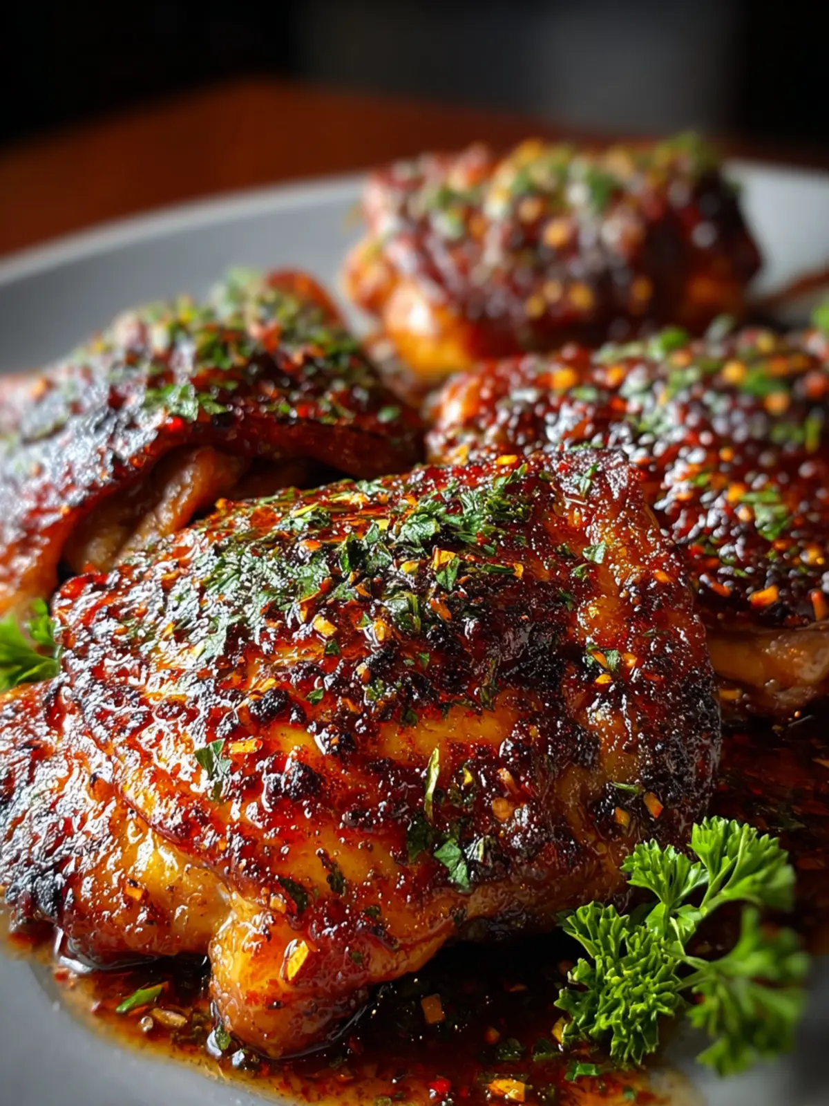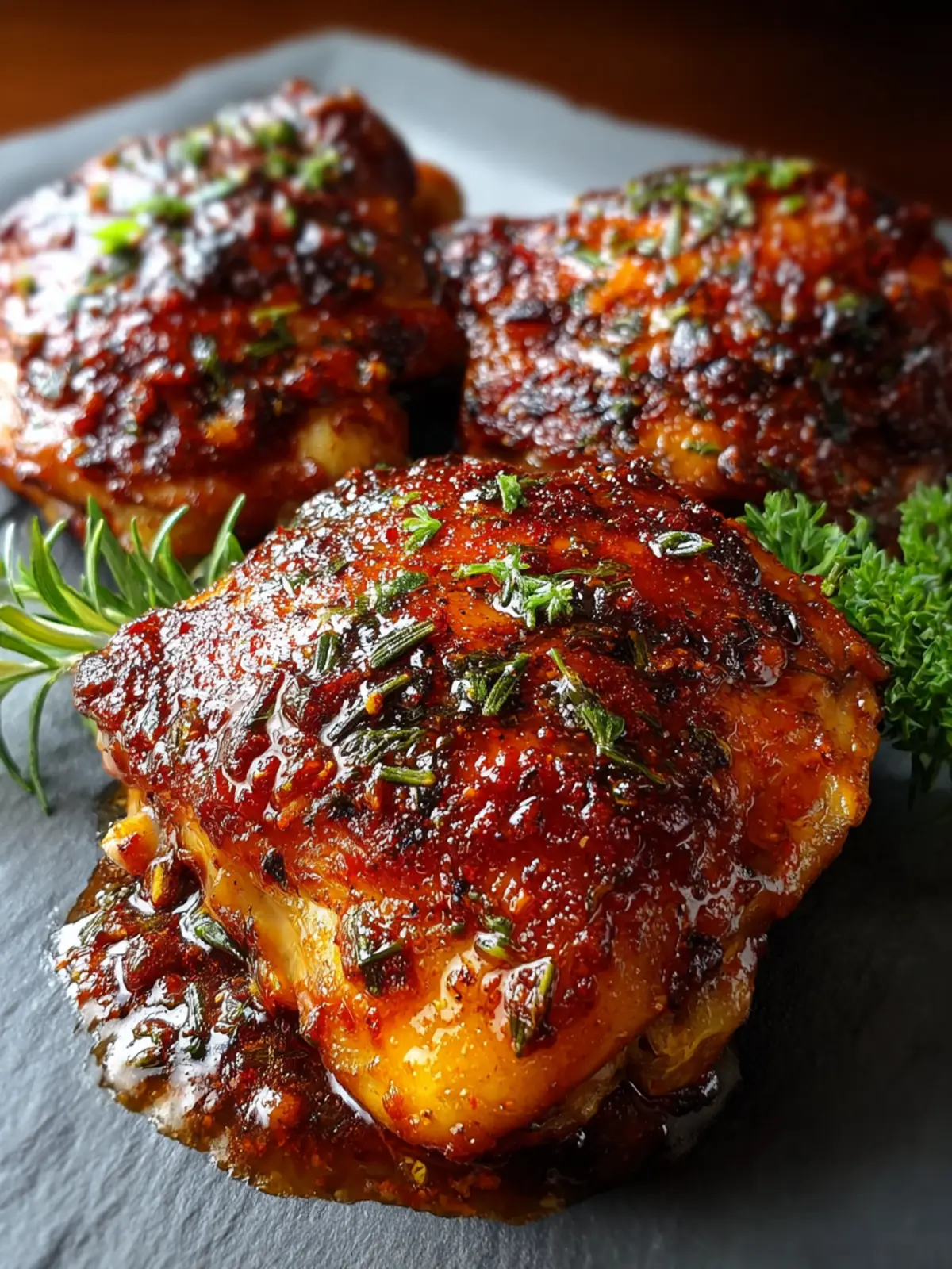 Deliciously seasoned BBQ chicken thighs, baked to perfection.