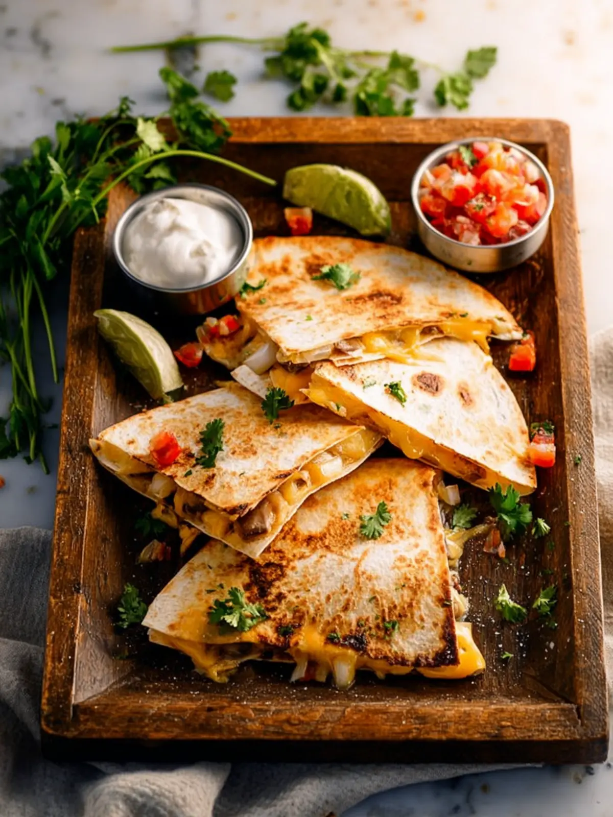 Transform your serving platter into a festive taco bar! Set out toppings like shredded cheese, sliced jalapeños, and fresh cilantro. Encourage your guests to build their own quesadilla masterpiece!