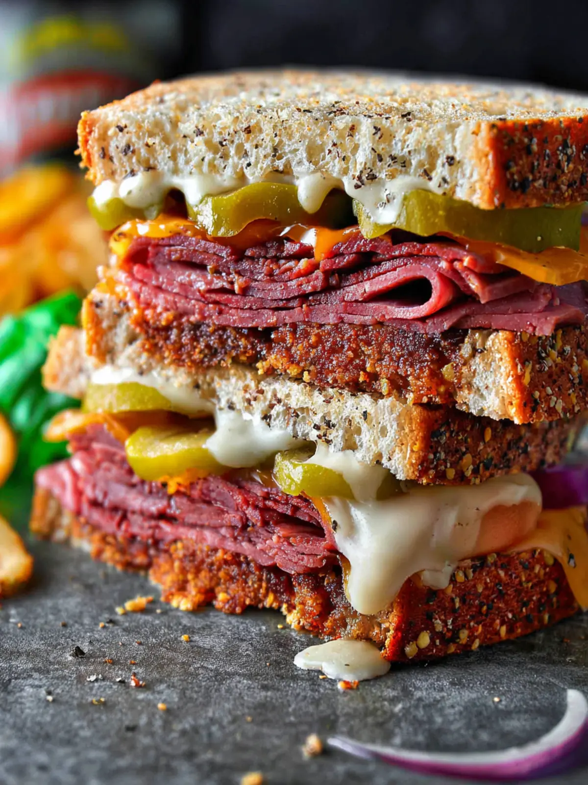 The star of the show! Choose high-quality pastrami for a rich, smoky flavor. Typically made from beef brisket, the slices should be thick and tender, making each bite a delight. If you want to replicate the deli’s magic, pick pastrami that’s freshly sliced from your local butcher.