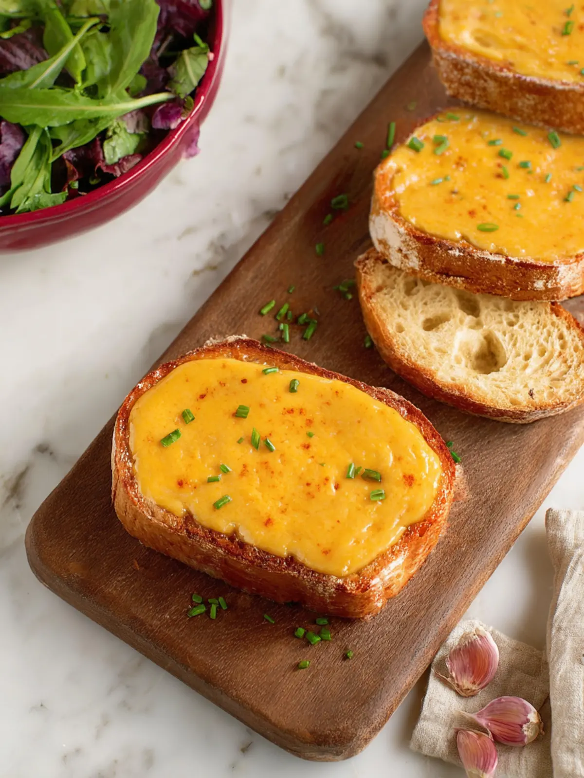 Fresh Salad: Pair your dish with a light green salad tossed in a tangy vinaigrette. The acidity complements the richness of the rarebit beautifully.