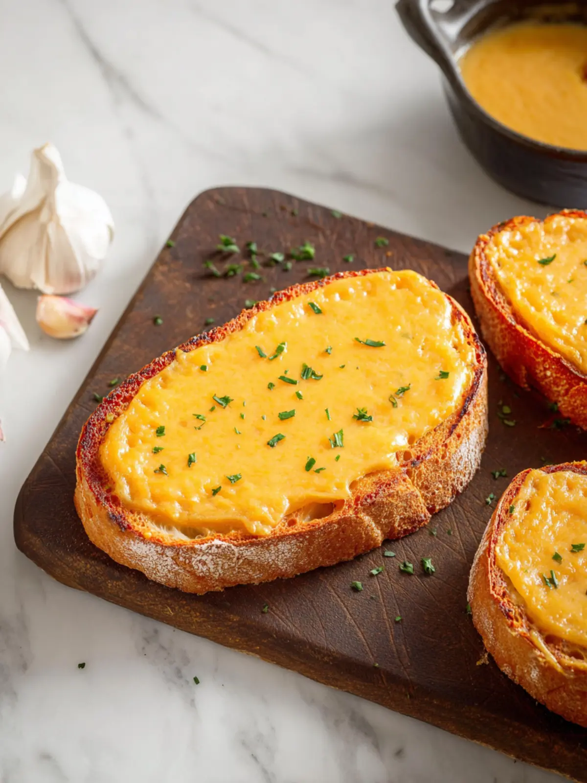 Crusty Bread: A thick slice of toasted sourdough or whole-grain bread provides a perfect contrast to the creamy cheese topping, soaking up every bite.